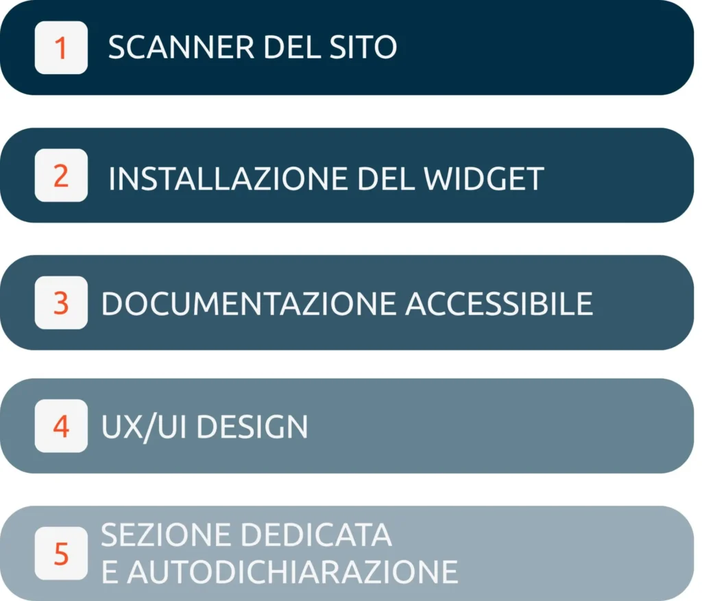 Digital accessibility is the result of a set of coordinated actions: from theinitial technical analysis to the correction of critical site issues, from thealignment of documents to the highest standards to interventions on design and user experience to eliminate any barriers.
